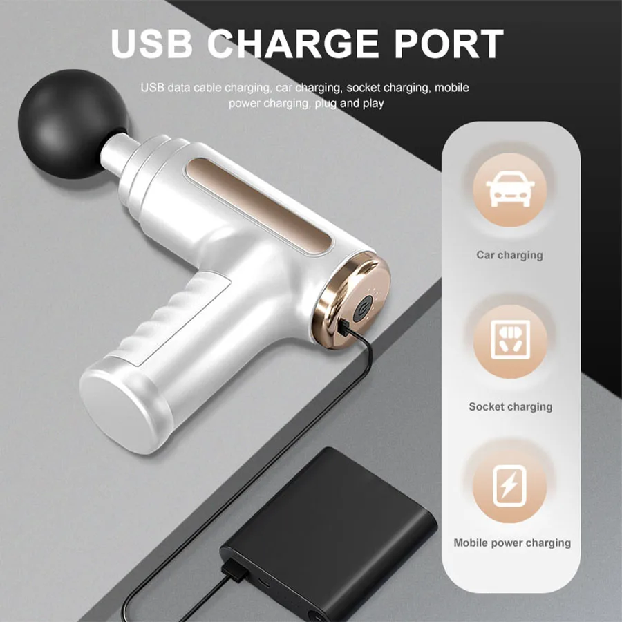 Exercise Massager Mini Fascia Massage Gun Electric Massager Body Relaxation Belt 4 Replaceable Heads Fitness Equipment Fascia Gun